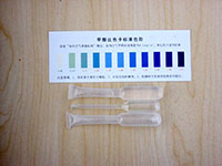 5、 用手握著比色管,上下?lián)u動30秒,用手心溫度加熱5分鐘,用比色管和甲醛色譜進行比較,即可讀出被檢測房間的甲醛大概含量。